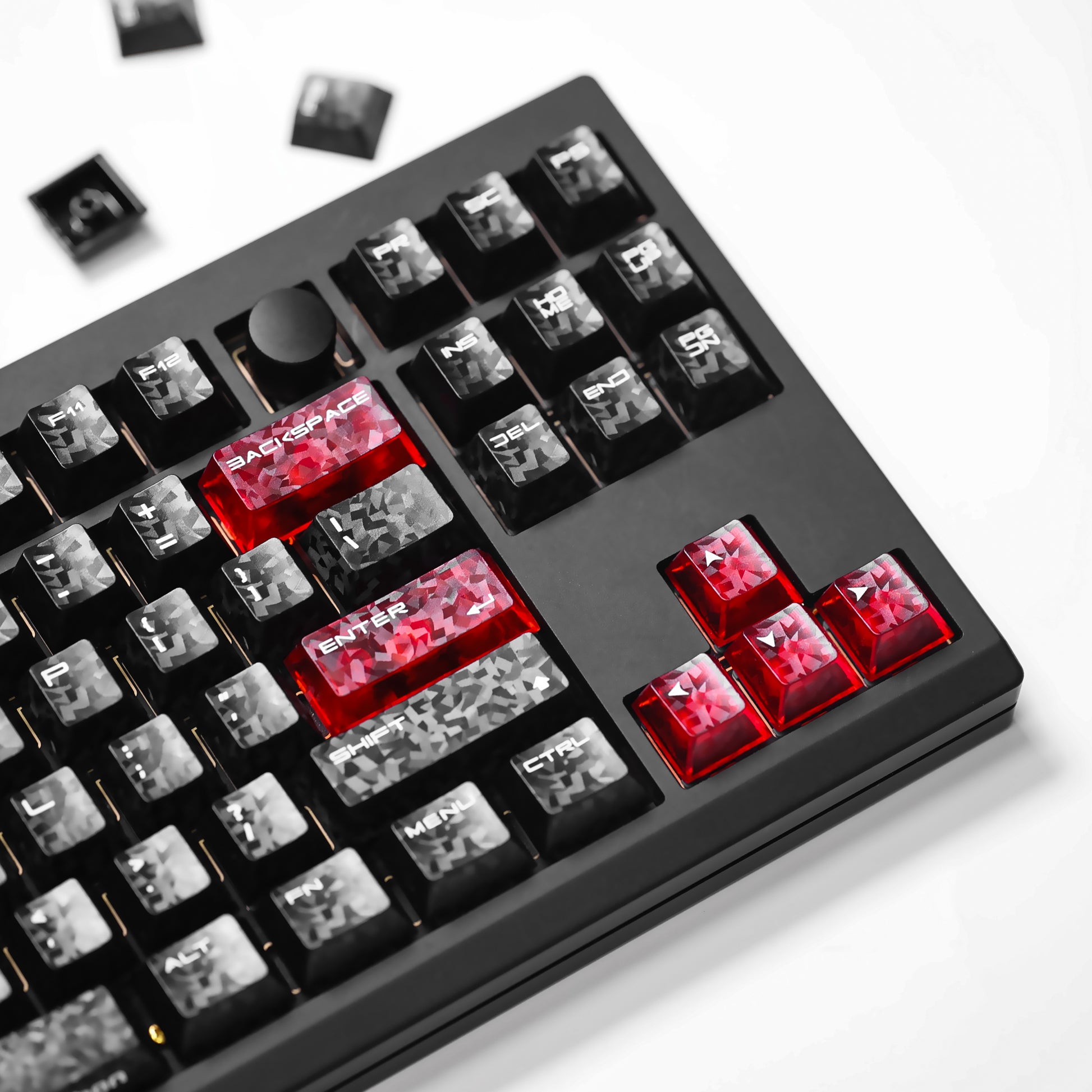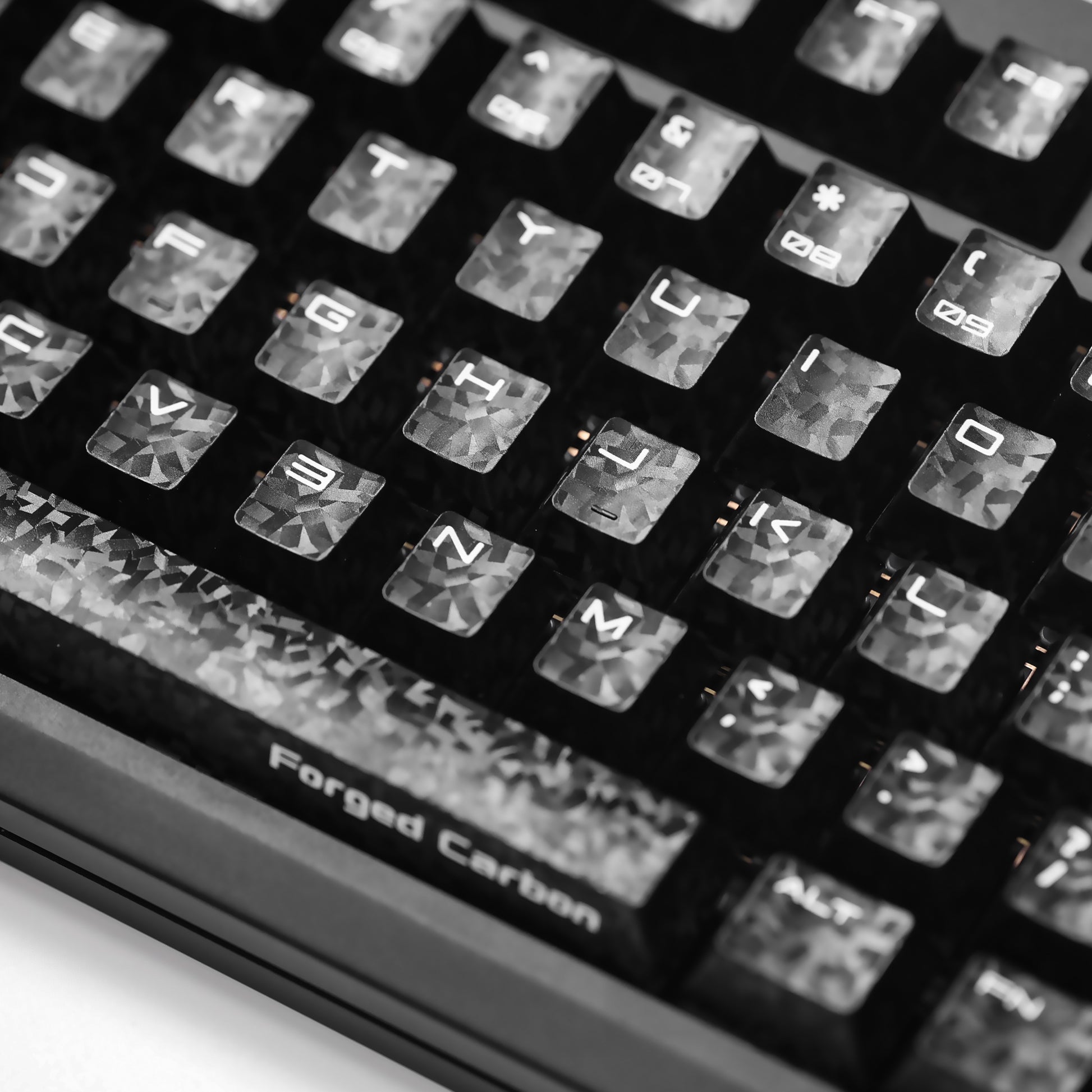 Elevate your keyboard’s visual presence with striking forged carbon fiber aesthetics.