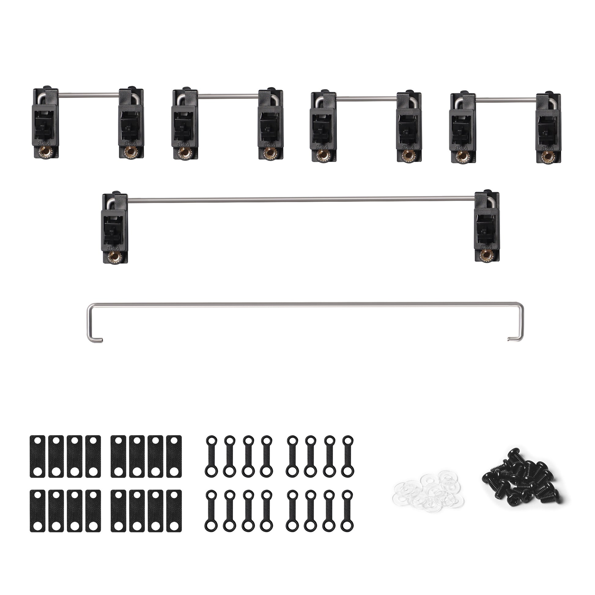 - 104 Set Includes: 2U x 7, 6.25U x 1, Extra 7U wire x 1, Foam stickers, Screws, Washers